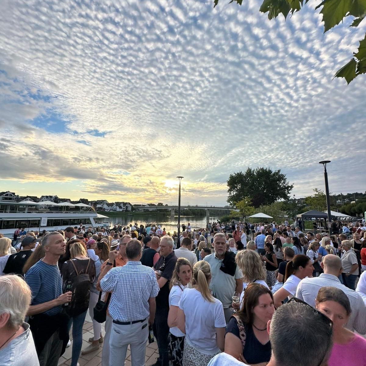 Erneut ein herrlicher Abend, erneut eine tolle Atmosphäre, erneut bestens besucht: Der „Sundowner 4.0“ Mitte Mai am Vallendarer Rheinufer stand seinen letztjährigen Vorgängern in nichts nach! Mit den Worten „Abendsonne genießen, Sonnenuntergang erleben, plaudern mit alten/neuen Bekannten“ hatten die Bemoosten diese bereits vierte Ausgabe des „After Work“-Events angekündigt. Und so genossen Veranstalter sowie zahlreiche Besucherinnen und Besucher bei bestem Wetter diesen sehr angenehmen, launigen Sommerabend. Kaum fiel um 17 Uhr der Startschuss, schon fand sich eine Menschentraube vor den Essens- und Getränketheken ein, um mit einem Glas Wein in der einen und einem Stück Pizza in der anderen Hand in den (Feier-)Abend zu starten. Die Organisatoren rund um die Orga-Leiter Fred Pretz und Andreas Bomm waren sehr angetan von der Vielzahl der Gäste und dankten im Anschluss dem bestens aufgelegten Bemoosten-Team. Dem vielfach geäußerten Wunsch nach einem baldigen „Sundowner 5.0“ wird man sicherlich recht bald nachkommen.