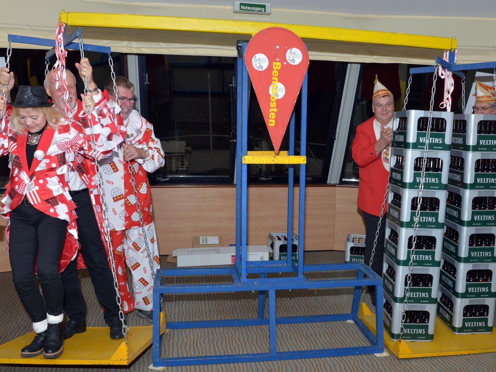 Im Rahmen der Sessionseröffnung 2022 hatten die Bemoosten das damalige Königspaar Fabian und Lisa Baldus mit einer dafür eigens konstruierten Bierwaage gegen eine entsprechende Menge Gerstensaft aufgewogen. Die Verkostung eben jener Biermenge (und dazu passender fester Nahrung) fand in Form eines geselligen Beisammenseins von Schützen und Bemoosten im September in der Vallerer Au statt.
